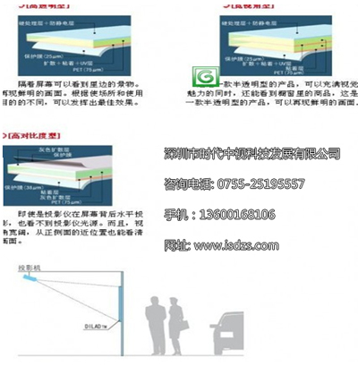 本公司經(jīng)營(yíng)各種韓國進(jìn)口投影膜,根據使用目的不同可分為:透明背投型、灰色背投型和白色背投型。 以?xún)?yōu)質(zhì)平滑的聚酯薄膜為材料,由具有擴散性的粘著(zhù)層、硬處理層、防靜電層構成,可以方便的用水貼在玻璃及透明亞克力板上使用。型號齊全、使用范圍廣泛,寬幅1524mm,長(cháng)度30米.可任意裁剪! 大量批發(fā)零售,歡迎來(lái)電咨詢(xún)!